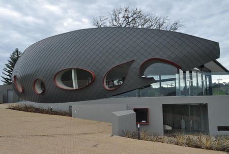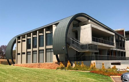 An elegant curvature which has also helped deliver an acoustic benefit in an area prone to severe storms is a striking feature of extensions to the National Research Foundation building in Persequor, Pretoria.