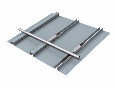 We recommend using roofing accessory snow guard systems that are attached to the seams using special clamps. A pipe of sufficient size and bending-resistance prevents snow lying on the roof from sliding off.